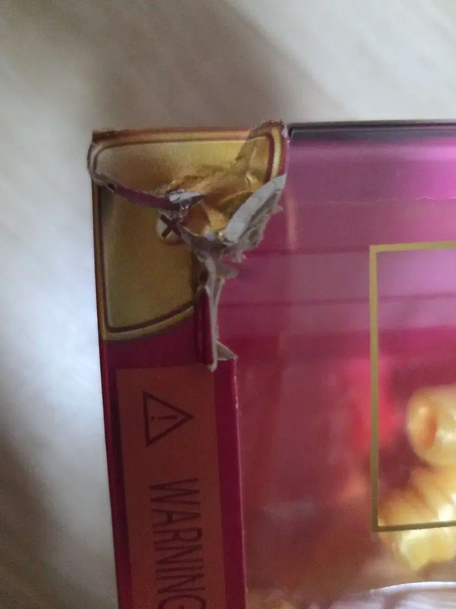 未開封のため、人形には別途紙がありますが、海外購入により箱が一部破損しています。(主に角の部分-写真参照)