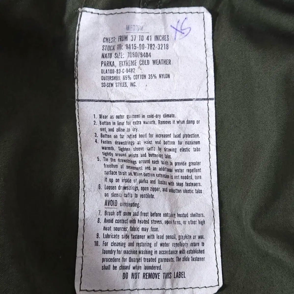 ◾ ミリタリー Extreme Cold Weather Parka 生地 仕様