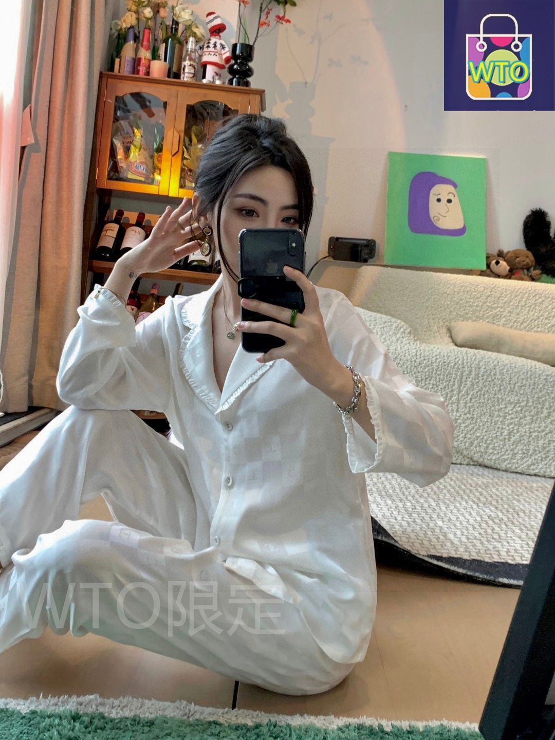 これは CHANEL シャネル の新モデルのパジャマです 原 質で 女性用の 2 ピースセットで 長袖と長パンツの です 大変 の商品で クラシックなダブル C と椿のデザインが特徴です -WTO輸入1