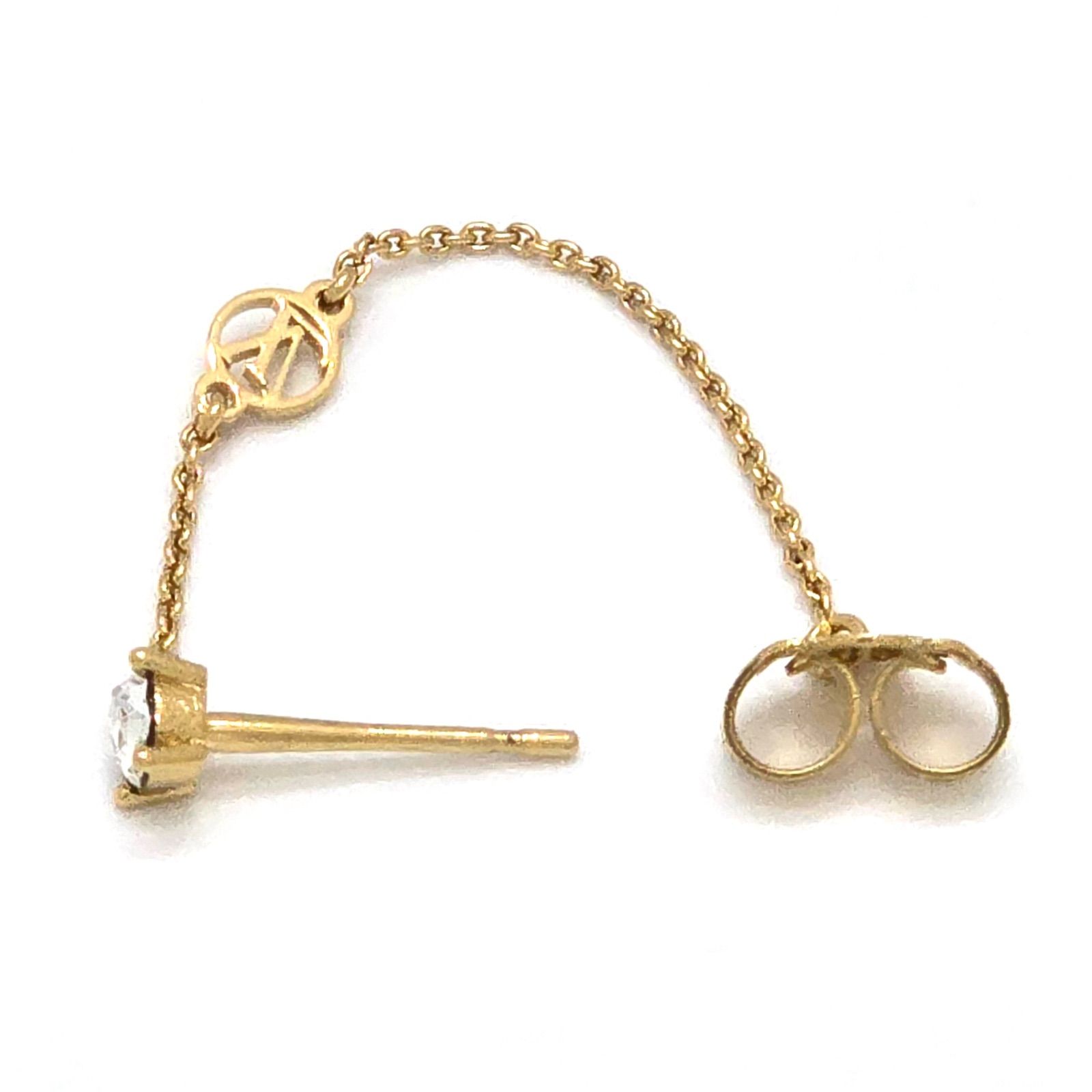 LOUIS VUITTON ルイヴィトン M 00390 ピアス プティルイ 片耳 ストラス ドロップチェーン LVサークルのチャーム ゴールド メタル スタッドピアス イタリア製