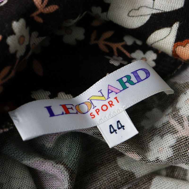 【品名】美品 大きいサイズ レオナール スポーツ LEONARD SPORT フラワープリント ウールタートルネックカットソー 44 茶色┃
