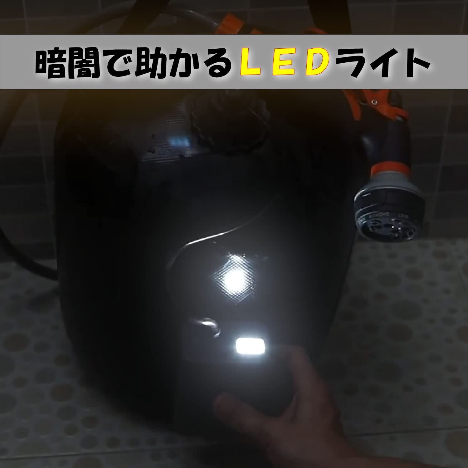 数量 充電式 簡易シャワー 電動 アウトドア リットル 携帯 しゃわー 簡単 タンク 容量 20 L 水量 毎分 5 電動式 ポンプ 持ち運び バッテリー 4400 mAh 100分使用可 USB 充電 LED 温水 ライト シャワータイプ 8種類