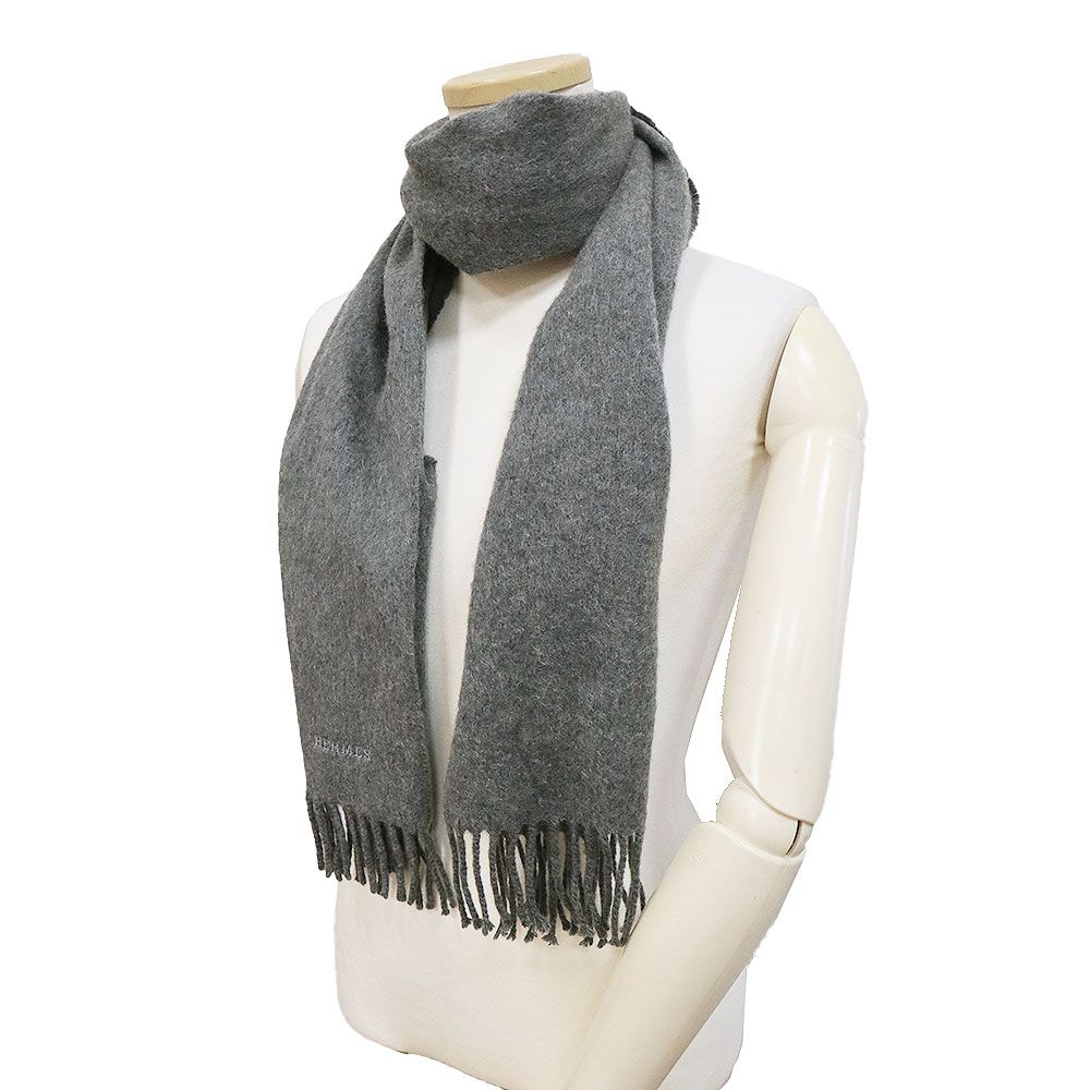 エルメス ユニ ブロデ マフラー フリンジ カシミヤ 100% フランネル グレー HERMES