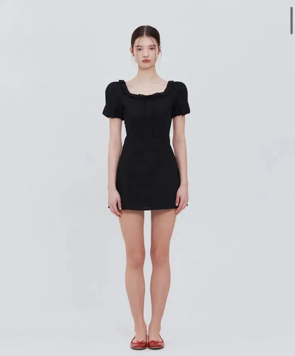 これはノット・ユア・ローズ・ダンデリオンのブラックミニドレスです。スクエアネックにシャーリングのディテールを加え、女性らしさをプラスしました。デートルックにもゲストルックにもピッタリだと思います。ご不明な点がなければ、すぐに安心してお支払いいただけます!