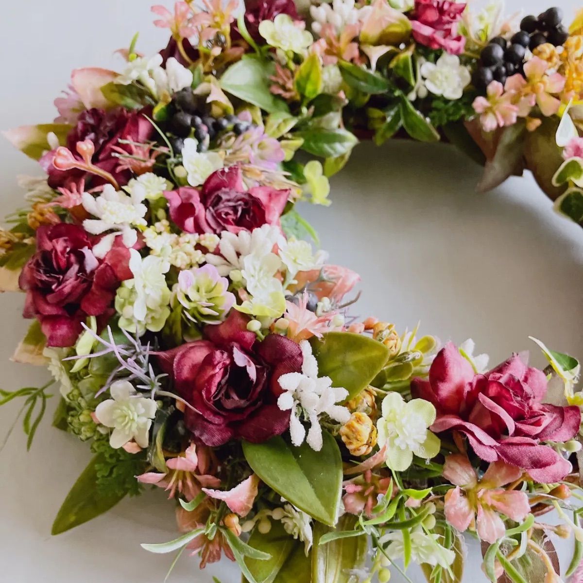 まるで本物の生花と間違えるほどのクオリティの高い花材でお作りしたリースや雑貨は 枯れない!花びらが散らない!