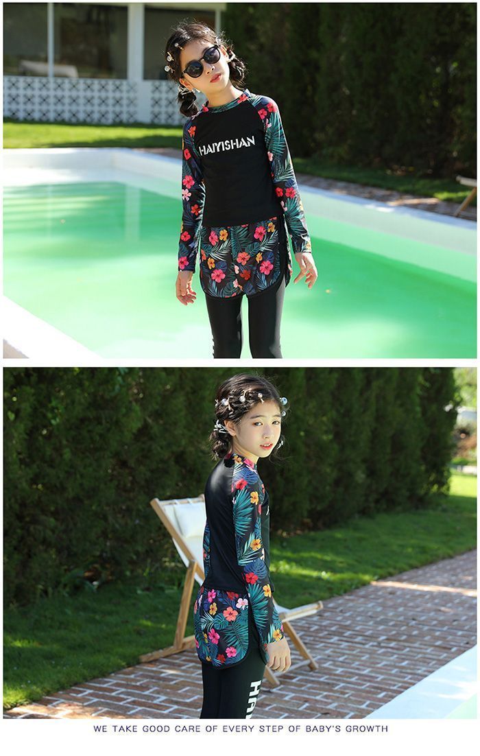 ラッシュガード キッズ 水着 女の子 セパレート 子供 上下セット 花柄 3点セット 子供水着 長袖 こども 子供用 長パンツ スイムウェア haiyishan 01